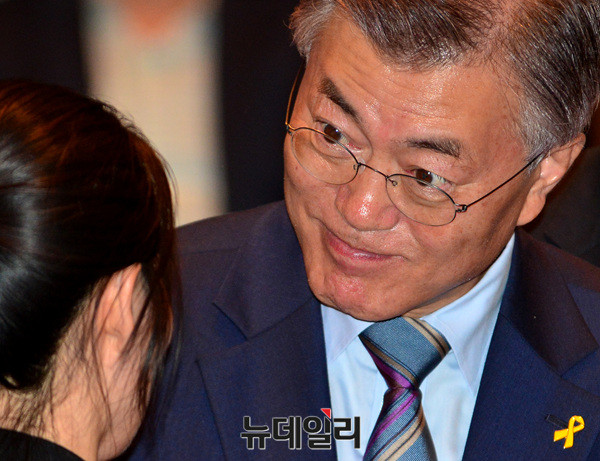 문재인 더불어민주당 대선후보가 14일 오전 한국프레스센터 국제회의장에서 열린 '제19대 대통령후보 초청 특별강연회' 참석 후 이동하고 있다.