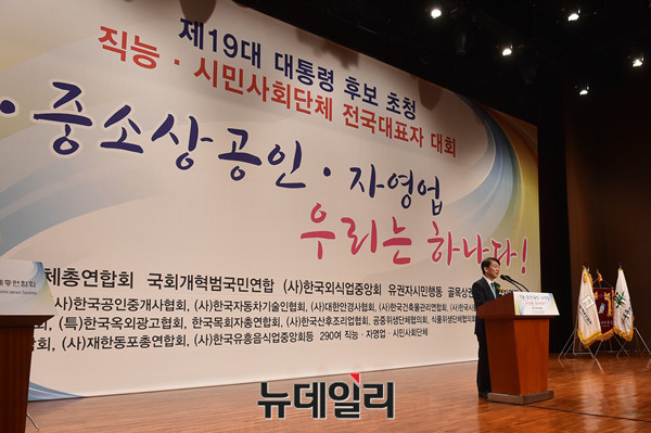 국민의당 안철수 대선후보가 14일 오후 서울 여의도 63컨벤션센터에서 열린 '제19대 대통령 후보 초청 전국 직능 시민사회단체 대표자 대회'에서 발언을 하고 있다.