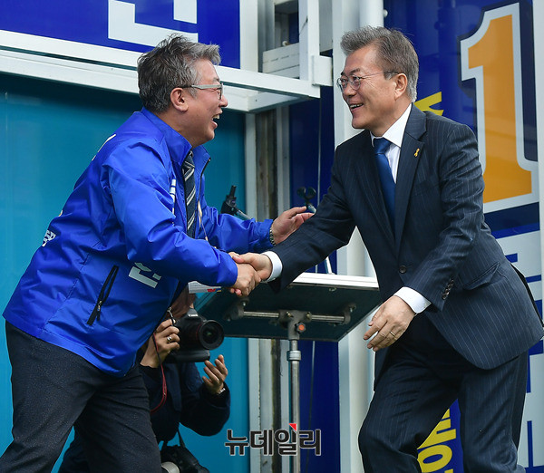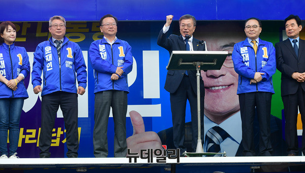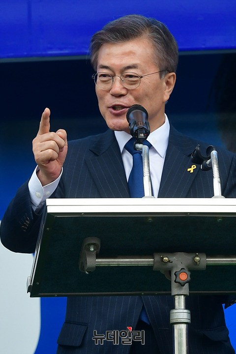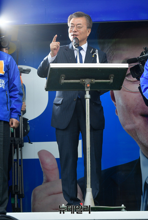 본격적인 대통령 선거 유세기간이 시작된 17일 오전 대구 북구 경북대학교 북문에서 문재인 더불어민주당 대선후보가 입장해 지지를 호소하고 있다. 이날 오전 2.28민주의거 기념탑 참배를 시작으로 대구에서 선거유세를 시작한 문 후보는 대전에 이어 수원과 서울을 각각 찾아 선거유세를 이어갈 예정이다. (대구=뉴데일리 정상윤 기자)