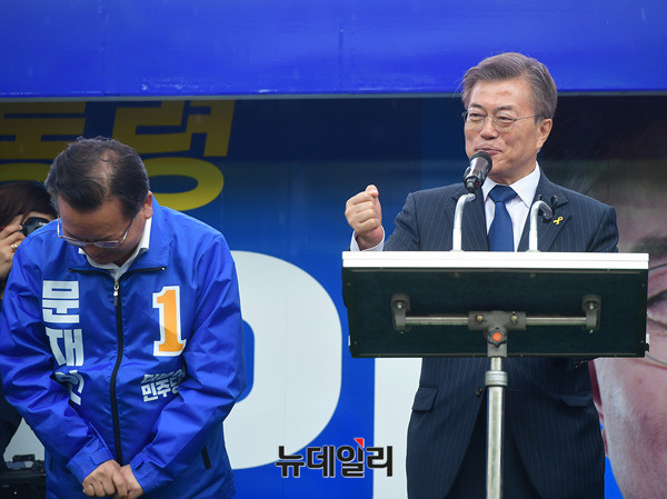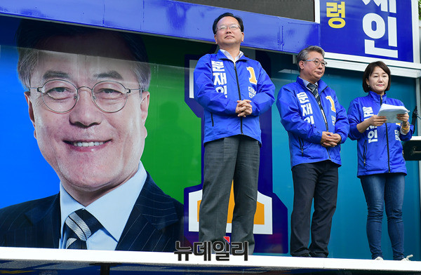 김부겸 더불어민주당 의원이 본격적인 대통령 선거 유세기간이 시작된 17일 오전 대구 북구 경북대학교 북문에서 진행된 문재인 더불어민주당 대선후보 유세현장에서 문 후보의 입장을 기다리고 있다. 이날 유세현장에는 조응천, 김부겸, 이재정, 김경수 의원, 김현, 김진표 전 의원 등이 참석했다. 이날 오전 2.28민주의거 기념탑 참배를 시작으로 대구에서 선거유세를 시작한 문 후보는 대전에 이어 수원과 서울을 각각 찾아 선거유세를 이어갈 예정이다. (대구=뉴데일리 정상윤 기자)