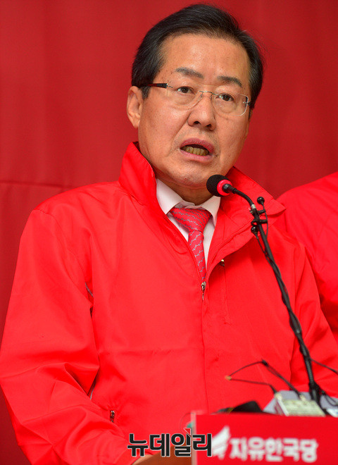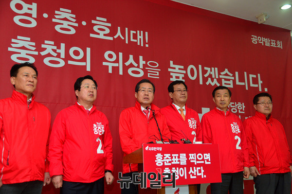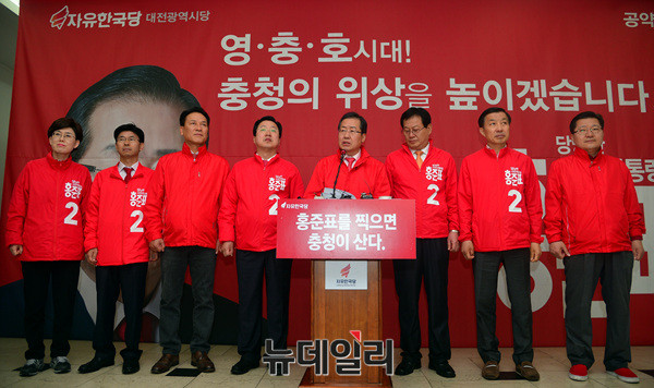 홍준표 자유한국당 대선후보가 17일 오후 대전 중앙시장에서 대전·충남지역 공약 발표를 하고 있다. 홍 후보는 이에 앞서 충남 아산에 위치한 현충사를 참배하고 중앙시장을 방문해 상인들과 만남을 가졌다. (대전=뉴데일리 공준표)