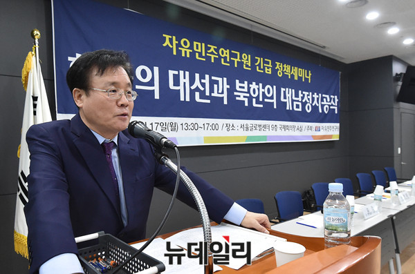 자유민주연구원이 17일 오후 서울 종로구 글로벌센터에서 '한국의 대선과 북한의 대남정치공작'이라는 주제로 긴급 정책세미나를 개최했다.