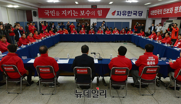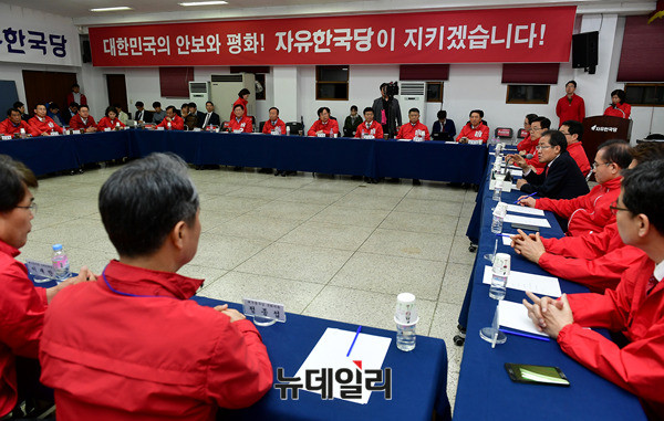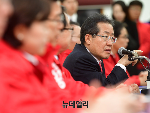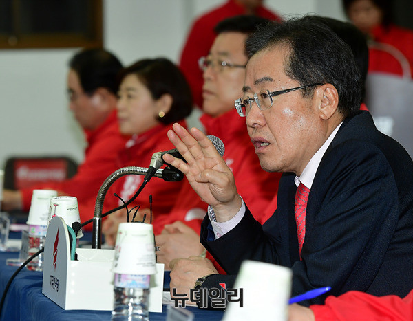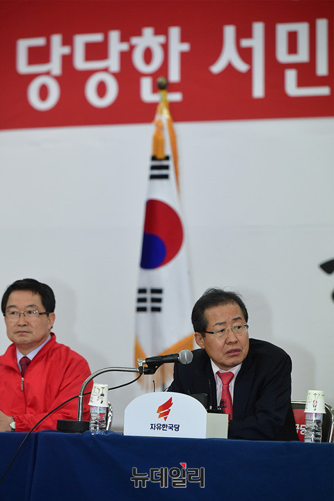 홍준표 자유한국당 대선후보가 대통령 선거 유세가 시작된 17일 오후 대구 수성구 자유한국당 대구시당에서 열린 대구·경북 비상선거대책회의에 참석해 모두 발언을 하고 있다. 홍 후보는 지난 14일 대구를 찾은지 사흘만에 다시 찾아 본격적인 선거운동을 이어가고 있다.