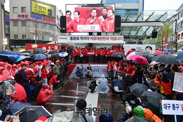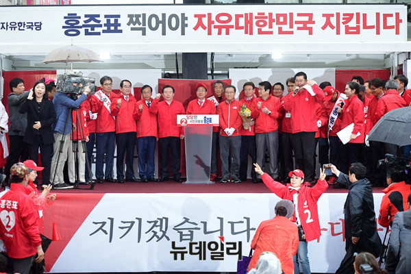 홍준표 자유한국당 대선후보가 대통령 선거 유세가 시작된 17일 오후 대구 동성로에서 첫 유세를 시작하고, 지지를 호소했다.