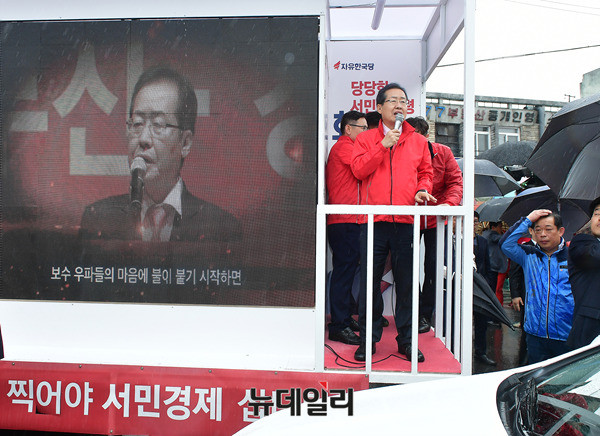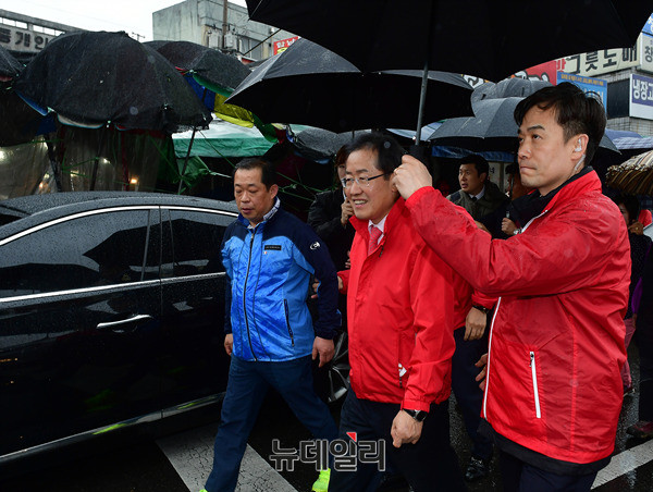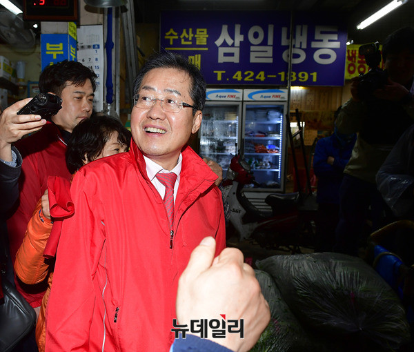 홍준표 자유한국당 대선후보가 대통령 선거 유세가 시작된 17일 오후 대구 북구 칠성시장을 찾아 상인들과 인사를 나누고 있다. 홍 후보는 지난 14일 대구를 찾은지 사흘만에 다시 대구를 찾아 "대한민국 안보를 지키는 안보대통령과 대한민국의 서민을 지키는 서민대통령이 되겠다"고 지지를 호소했다. 밤에는 서문시장 야시장을 찾아 민심잡기에 나섰다. (대구=뉴데일리 정상윤 기자)