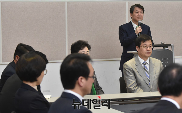 안철수 국민의당 대선후보가 18일 오전 대전 유성구 카이스트(KAIST)를 찾아 노인정책공약을 발표하고 있다.(대전=뉴데일리 이종현 기자)