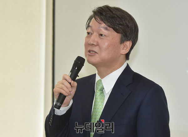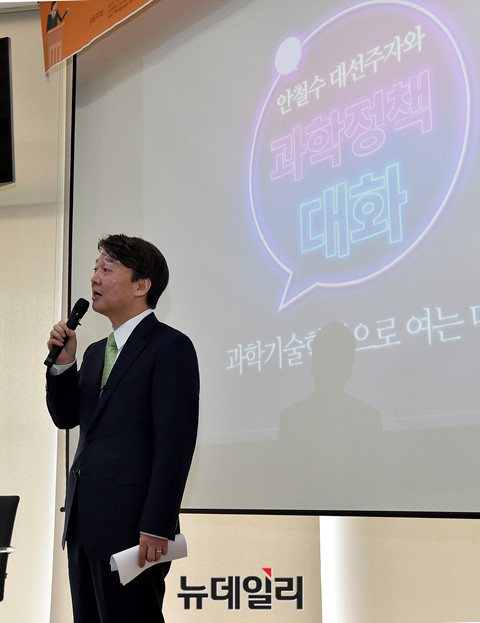 안철수 국민의당 대선후보가 18일 오전 대전 유성구 카이스트(KAIST)를 찾아 과학기술인들과 간담회를 가지고 있다.(대전=뉴데일리 이종현 기자)