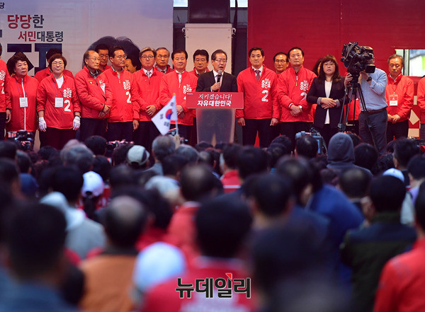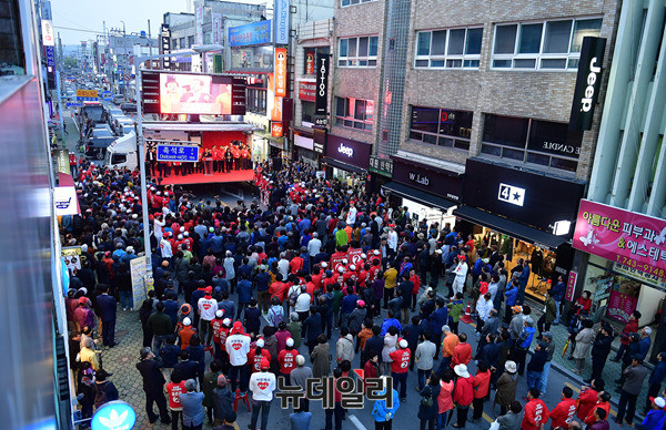 홍준표 자유한국당 대선후보가 18일 오후 경남 진주 광미사거리를 찾아 "진주에서 적어도 홍준표는 90%이상 찍어줘야 한다"고 말했다. 앞서 홍 후보는 본격적인 선거유세가 시작된 17일 대구를 찾은데 이어 울산과 부산에 이어 마산 등 영남권 표심잡기에 나섰다. (경남 진주=뉴데일리 정상윤 기자)