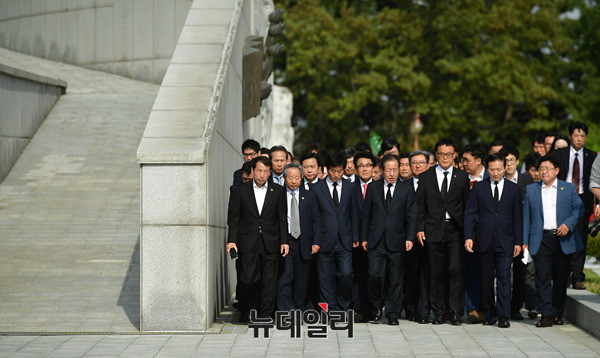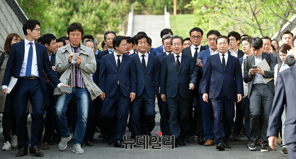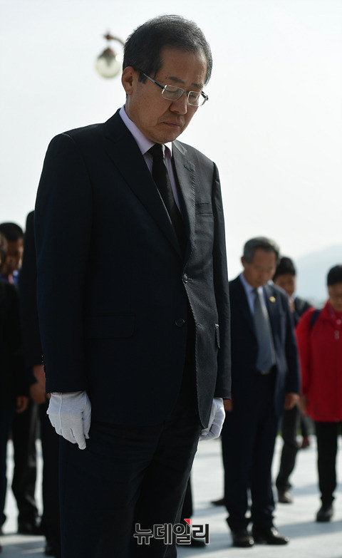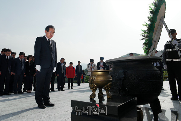 홍준표 자유한국당 대선후보가 18일 오후 창원시 마산회원구 국립3.15민주묘지를 찾아 헌화하고, 참배했다. 방명록에 '사즉생'이라고 휘호했다. 이날 참배에는 이주영 중앙선거대책위원장, 강기윤 경남선대위부위원장, 김성찬 국가안보위원장, 김명연 중앙선대위 수석대변인, 전희경 중앙선대위 대변인, 이만기 김해을 당협위원장, 김대식 후보수행단장 등이 함께 했다. (경남 창원=뉴데일리 정상윤 기자)