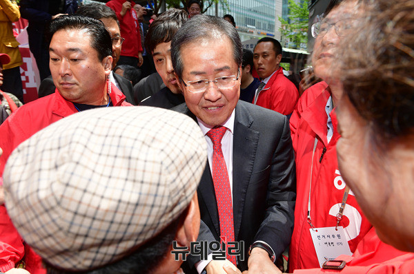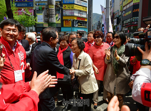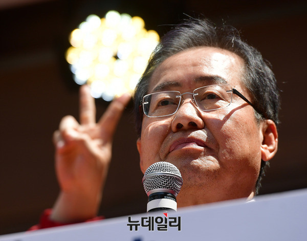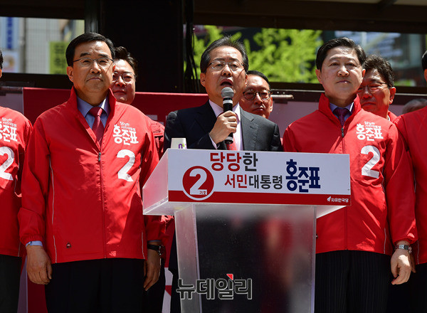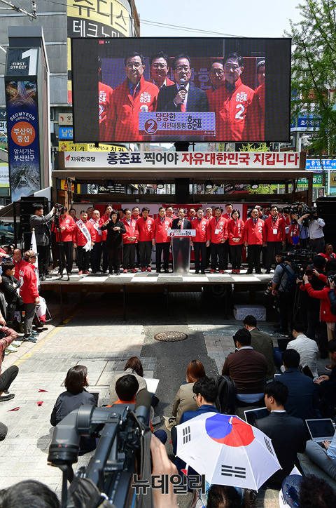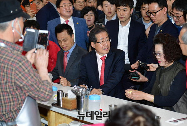 홍 후보는 본격적인 선거운동이 시작된 17일부터 대구, 울산, 부산, 창원, 진주지역을 돌며 영남권 표심 잡기에 돌입했다. (부산=뉴데일리 정상윤 기자)