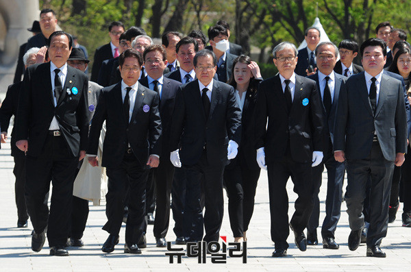 홍준표 자유한국당 대선후보가 19일 오전 서울 강북구 국립 4.19 민주묘지를 찾아 참배 후 방명록에 "이땅에 민중주의가 아닌 민주주의를"이라고 남겼다.