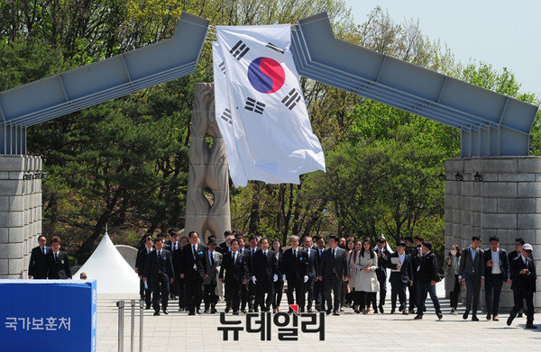 홍준표 자유한국당 대선후보가 19일 오전 서울 강북구 국립 4.19 민주묘지에 참배를 위해 입장하고 있다.