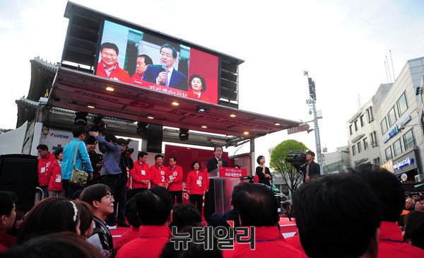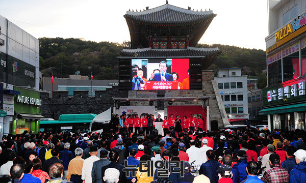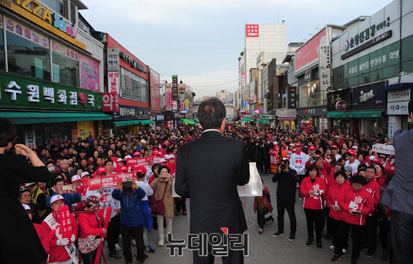 홍준표 자유한국당 대선후보가 20일 오후 수원 지동시장 앞 광장에서 집중유세를 하고 있다. 홍 후보는 이에 앞서 용인 중앙시장을 방문해 유세에 나섰다. (경기 수원=뉴데일리 공준표 기자)