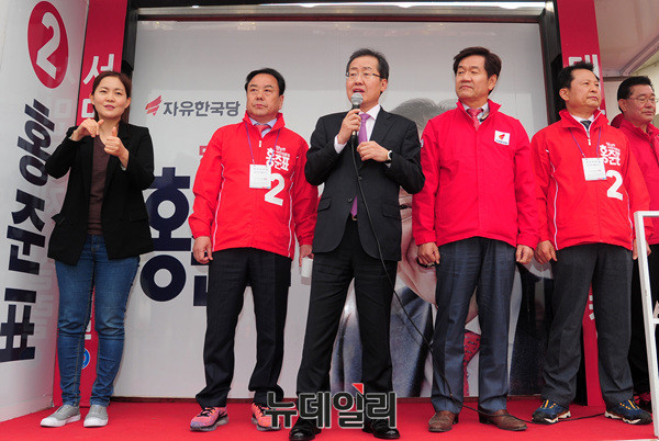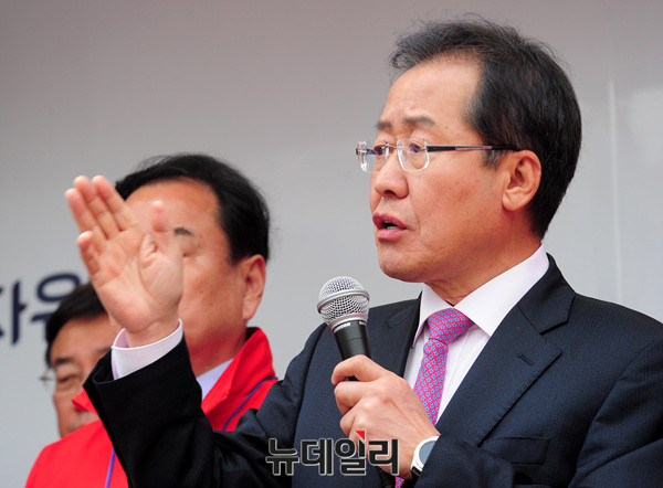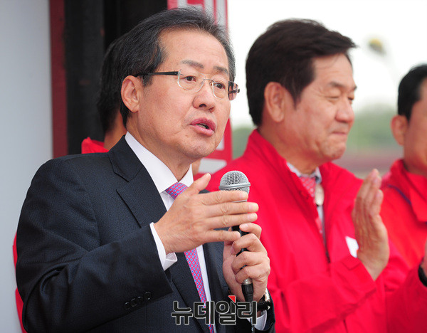 홍준표 자유한국당 대선후보가 20일 오후 용인 중앙시장에서 발언하고 있다. 홍 후보는 앞서 평택 해군 2함대를 방문해 천안함과 참수리호를 둘러보고 보훈·안보 공약을 발표했다. 이어 수원 지동시장에서 유세에 나섰다. (경기 용인=뉴데일리 공준표 기자)
