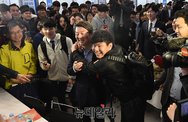 안철수 국민의당 대선후보가 20일 오후 서울 동대문디자인플라자에서 열린 산업기술 유망기업 채용, 창업박람회에서 참석자들과 인사를 나누고 있다.