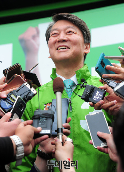 안철수 국민의당 대선후보가 21일 오후 울산 남구 롯데호텔 앞에서 유세 후 미소 짓고 있다. 안 후보는 앞서 울산 그린카 기술센터를 방문해 친환경자동차와 자율주행차를 둘러보고 울산형 연구기반단지를 조성하겠다는 공약을 발표했다. 이어 부산 서면에서 유세에 나설 예정이다. (울산=뉴데일리 공준표 기자)