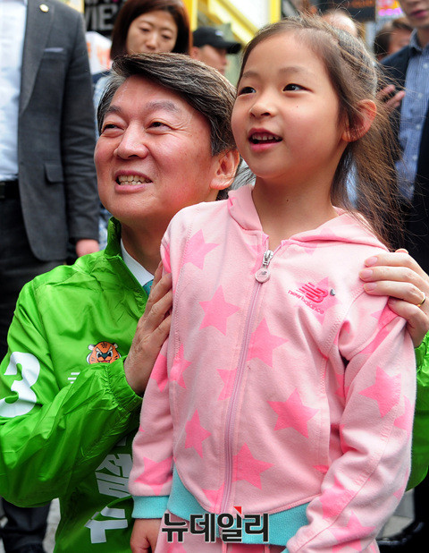 안철수 국민의당 대선후보가 21일 오후 울산 남구 롯데호텔 앞 유세에 앞서 아이와 사진을 촬영하고 있다.