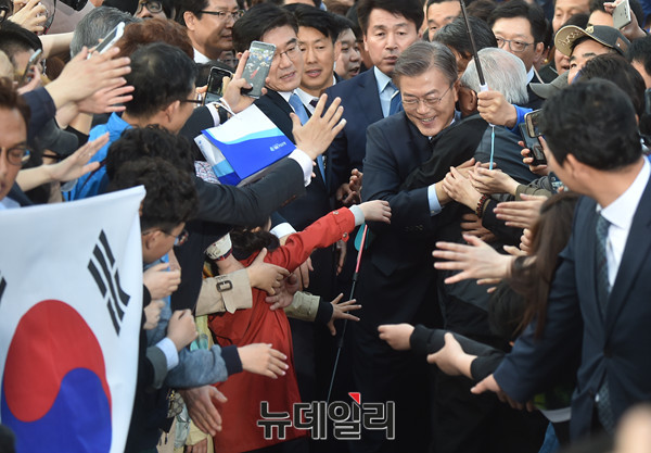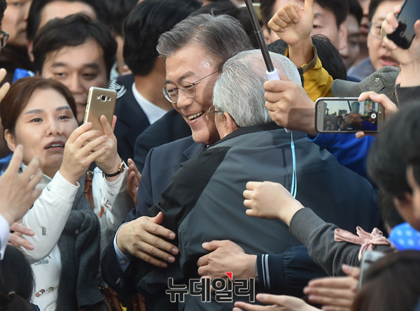 [포토] 지지들과 포옹하는 문재인 더불어민주당 대선 후보