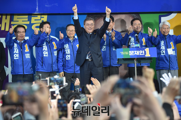 [포토] 지지자들에게 손들어 인사하는 문재인 후보
