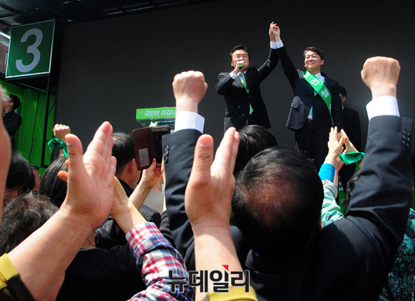 안철수 국민의당 대선후보가 22일 오전 경남 창원시 의창구 소답시장을 방문해 유세를 하고 있다. 안 후보는 앞서 부산항 국제여객터미널을 방문해 북항 재개발현장을 둘러봤다. 이어 마산어시장에서 유세 후 김해 봉하마을을 방문해 노무현 전 대통령 묘역에 참배할 예정이다. (경남 창원=뉴데일리 공준표 기자)