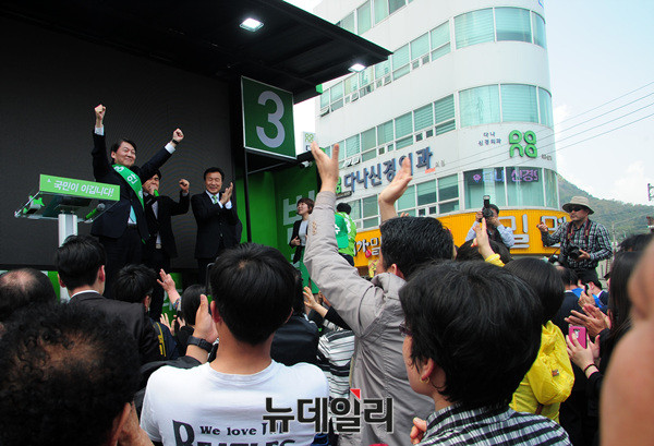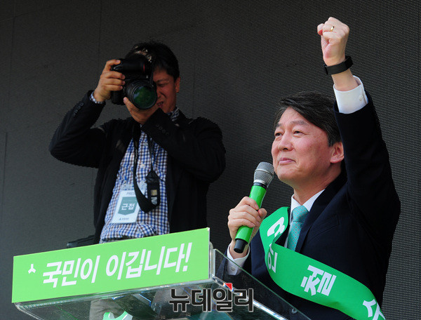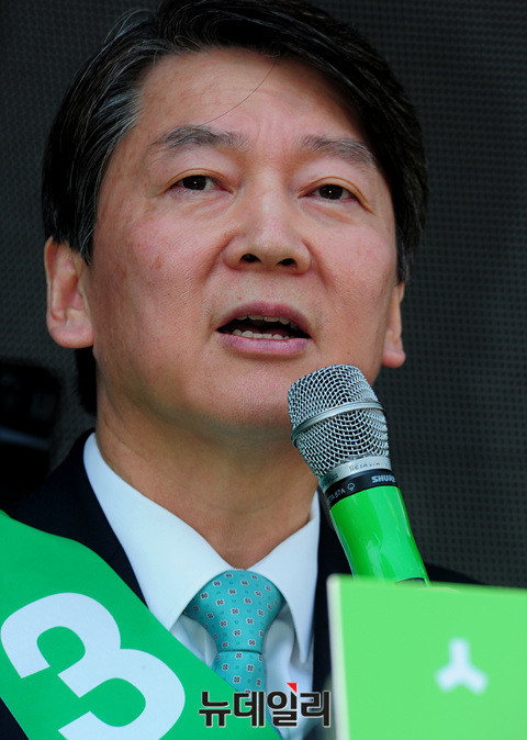 안철수 국민의당 대선후보가 22일 오전 경남 창원시 의창구 소답시장을 방문해 발언하고 있다. 안 후보는 앞서 부산항 국제여객터미널을 방문해 북항 재개발현장을 둘러봤다. 이어 마산어시장에서 유세 후 김해 봉하마을을 방문해 노무현 전 대통령 묘역에 참배할 예정이다. (경남 창원=뉴데일리 공준표 기자)