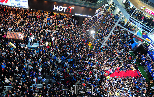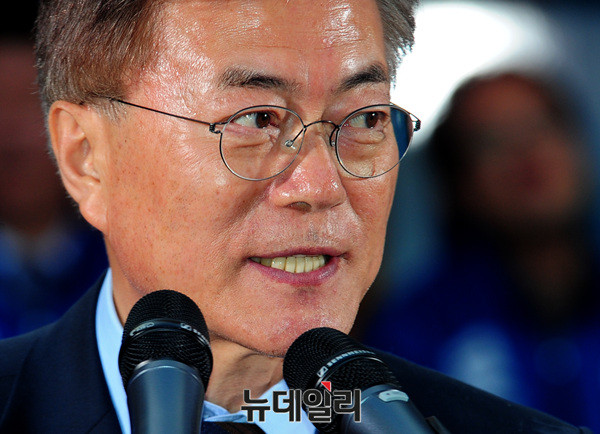 문재인 더불어민주당 대선후보가 22일 오후 부산 서면에서 유세를 하고 있다. 문 후보는 앞서 울산 삼산동과 창원시 상남동에서 유세를 이어갔다. (부산=뉴데일리 공준표 기자)