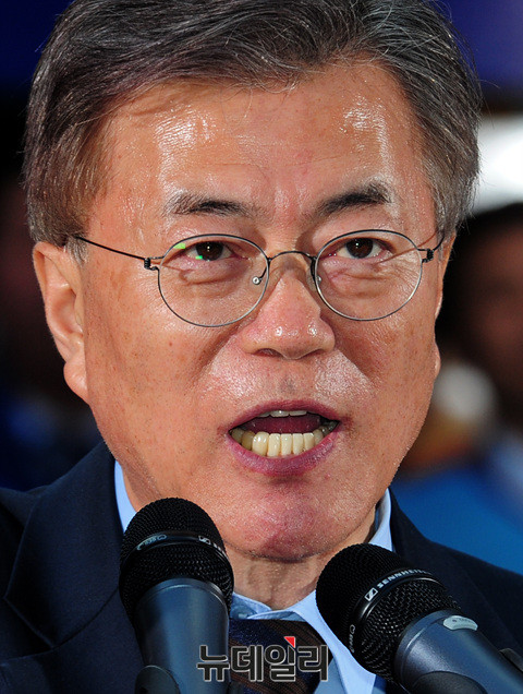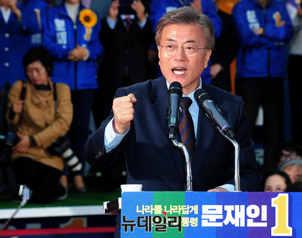 문재인 더불어민주당 대선후보가 22일 오후 부산 서면에서 발언하고 있다. 문 후보는 앞서 울산 삼산동과 창원시 상남동에서 유세를 이어갔다. (부산=뉴데일리 공준표 기자)