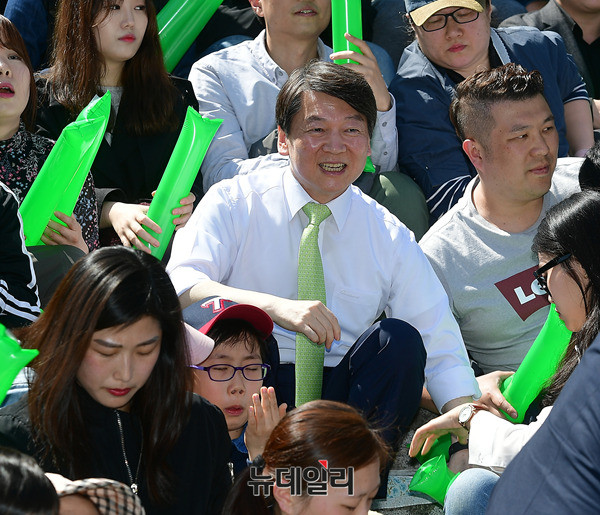 안철수 국민의당 대선후보가 23일 오후 서울 광화문 세종문화회관 계단에서 열린 대한민국 미래선언에 참석해 겉옷을 벗고 있다. 문재인, 홍준표, 안철수, 유승민, 심상정 대선후보들은 이날 오후 8시부터 진행되는 후보자 토론회에 참석한다.