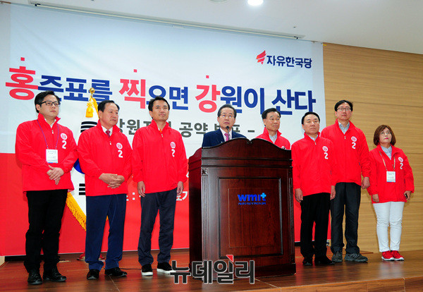 홍준표 자유한국당 대선후보가 24일 오전 강원 원주시 의료기기테크노벨리에서 발언하고 있다.홍 후보는 이날 강원 원주 중앙시장, 춘천, 경기 구리, 남양주, 하남, 성남에서 유세를 이어나갈 예정이다. (강원 원주=뉴데일리 공준표 기자)