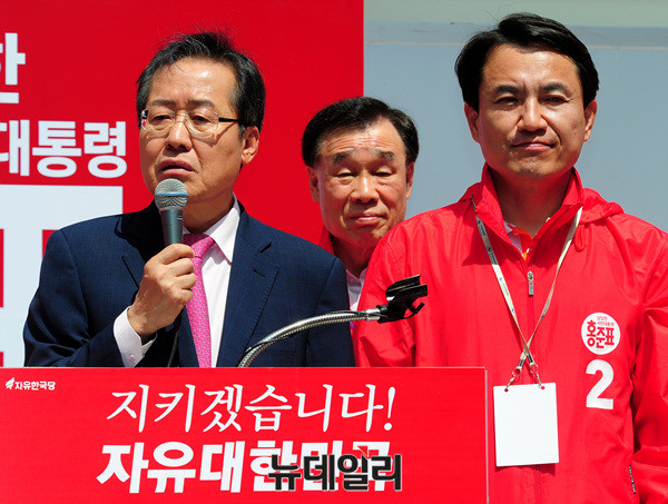 홍준표 자유한국당 대선후보가 24일 오전 강원 춘천시 브라운5번가에서 유세를 하고 있다.홍 후보는 앞서 원주시 의료기기테크노벨리에서 강원지역 공약을 발표했다. 이어 경기 구리, 남양주, 하남, 성남에서 유세를 이어나갈 예정이다. (강원 춘천=뉴데일리 공준표 기자)