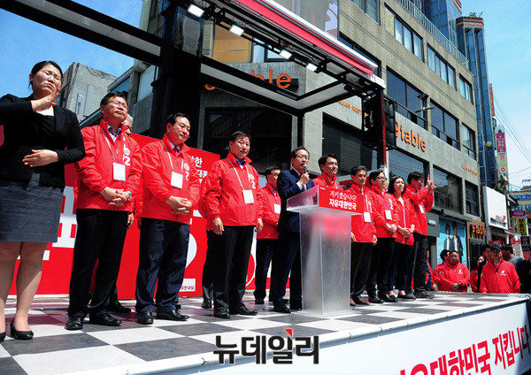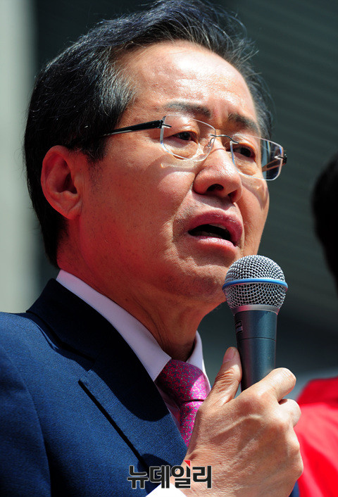 홍준표 자유한국당 대선후보가 24일 오전 강원 춘천시 브라운5번가에서 발언하고 있다. 홍 후보는 앞서 원주시 의료기기테크노벨리에서 강원지역 공약을 발표했다. 이어 경기 구리, 남양주, 하남, 성남에서 유세를 이어나갈 예정이다. (강원 춘천=뉴데일리 공준표 기자)