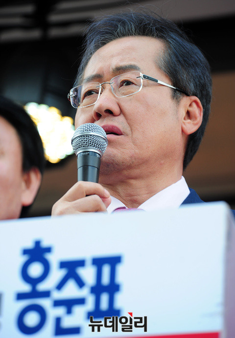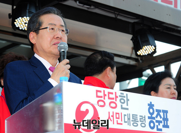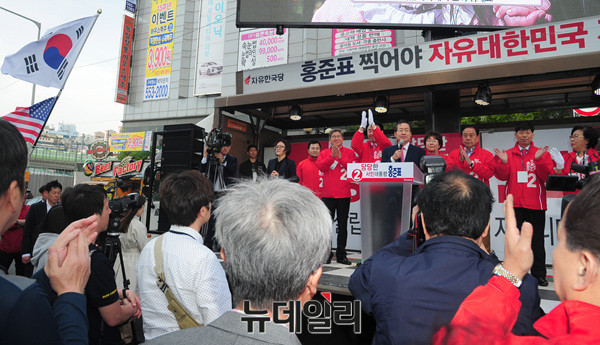 홍준표 자유한국당 대선후보가 24일 오후 경기도 구리시 돌다리사거리에서 유세를 하고 있다.