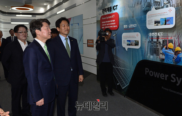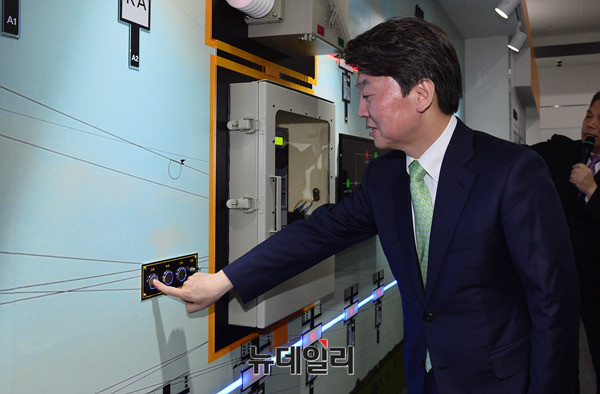 안철수 국민의당 대선후보가 24일 오후 전남 나주시 나주혁신도시 한전KDN을 방문해 홍보관을 둘러보고 있다. 안 후보는 이날 전남 목포와 나주, 광주를 찾아 호남권 표심을 모았다. (전남 광주=뉴데일리 정상윤 기자, 사진=공동취재단)