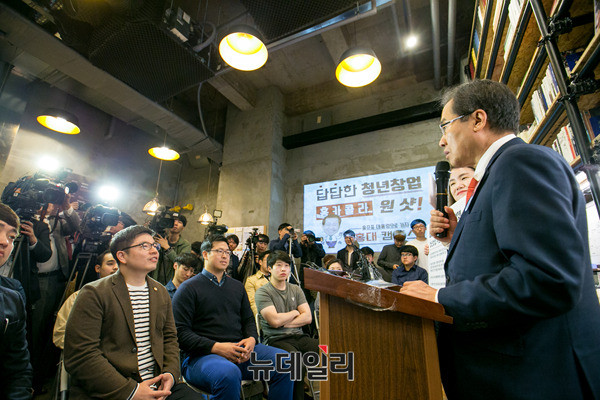 홍 후보는 ▲창업 활성화를 위한 5년간 20조원 창업 투자펀드 조성, 새만금에 규제없는 제4차 산업혁명특구 조성 ▲기술창업 활성화를 통한 28만개 일자리 창출, 청년층 영농창업과 정착 제고를 위한 지원 확대, 전통시장 기반 청년창업 '청년몰' 대폭 확대 ▲한국폴리텍대학을 소상공인 특성화 대학으로 육성 ▲문화분야 창업지원용 '문화적 기업' 인증제도 도입 ▲창업 실패자가 재도전 할 수 있는 멘토링 등 재창업 프로그램 강화 등 '홍카콜라 청년창업지원 5대 공약' 발표했다. (사진=공동취재단)