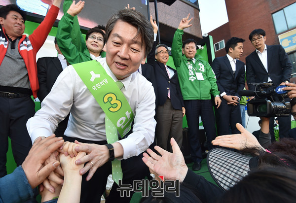 안철수 국민의당 대선후보가 26일 오후 강원도 강릉시 중앙시장에서 열린 '강릉 국민승리유세'에서 시민들과 인사를 나누며 지지를 호소하고 있다. (강원도 강릉= 뉴데일리 이종현 기자)