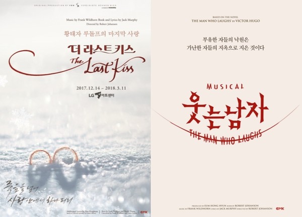EMK뮤지컬컴퍼니(이하 EMK)가 뮤지컬 '더 라스트 키스'와 '웃는 남자'의 무대에 오를 배우를 뽑는다.오디션 지원 서류는 5월 3일 자정까지 EMK홈페이지를 통해 온라인 접수 가능하며, 서류전형 합격자에 한해 5월 8~10일에 걸쳐 2~3차 실기 전형을 진행한다. 오디션은 두 작품 중 택일 지원하거나 동시 지원할 수 있다.마이얼링 실화를 바탕으로 뮤지컬 '황태자 루돌프'가 '더 라스트 키스(The Last Kiss)'로 새롭게 돌아온다. '더 라스트 키스'는 현실의 로미오와 줄리엣이라 불리는 황태자 루돌프와 마리 베체라의 아름다운 사랑과 비극적인 운명을 다룬다.'웃는 남자'는 EMK 첫 창작 뮤지컬 '마타하리'의 성공에 이어 두 번째로 선보이는 창작 뮤지컬로 프랑스의 대문호 빅토르 위고의 소설 '웃는 남자'(1869)를 무대화 한 작품이다.시대의 욕망에 희생되어 기형적인 얼굴의 광대로 살아야 했던 그웬플렌과 앞을 보지 못하는 소녀 데아의 비극적인 운명과 애절한 사랑을 아름답고 환상적인 무대 위에 그려낼 예정이다.세계적인 작곡가 프랭크 와일드혼과 작사가 잭 머피, 극작가이자 연출가 로버트 요한슨, 김문정 음악감독, 오필영 무대디자이너 등 명실상부 국내외 최고의 스태프들이 참여한다.뮤지컬 '더 라스트 키스'는 12월 14일부터 LG아트센터에서, 뮤지컬 '웃는 남자(The Man Who Laughs)'는 2018년 6월부터 예술의전당 오페라극장에서 공연된다.[사진=EMK뮤지컬컴퍼니]