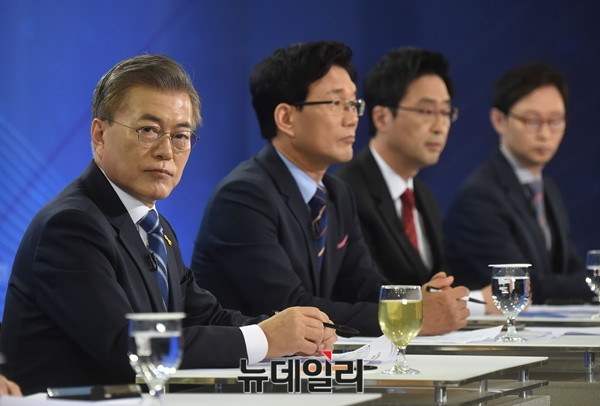 더불어민주당 문재인 대선후보가 27일 오전 서울 종로구 세종문화회관 세종홀에서 열린 '방송기자클럽 초청 토론회'에 참석해 발언을 하고 있다.