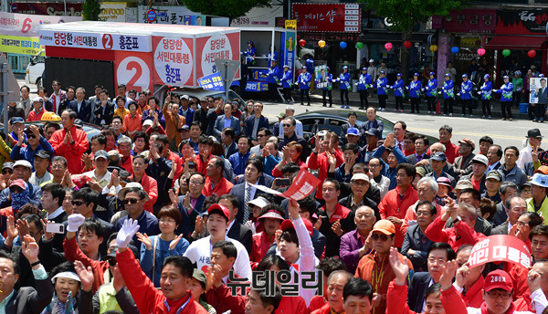 홍 후보는 "(사드배치를 반대하는)그 마음을 잘 안다"며 "대통령이 되면 확실하게 보상해드리겠다"고 말했다. 홍 후보는 이날 오후 충남 천안, 아산, 서산, 당진을 방문해 충청 표심을 공략했다. (경북 김천=뉴데일리 정상윤 기자)