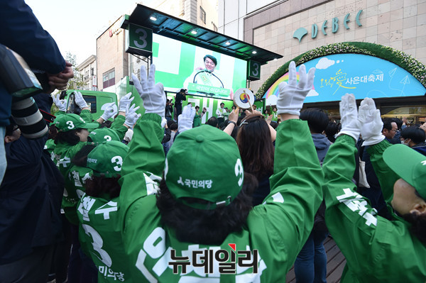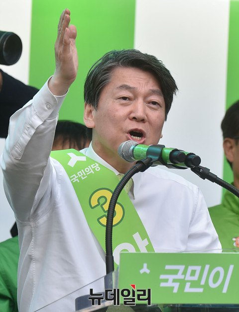 국민의당 안철수 대선후보가 27일 오후 대구 동성로 대구백화점 인근에서 열린 집중유세에서 시민들에게 지지를 호소하고 있다.
