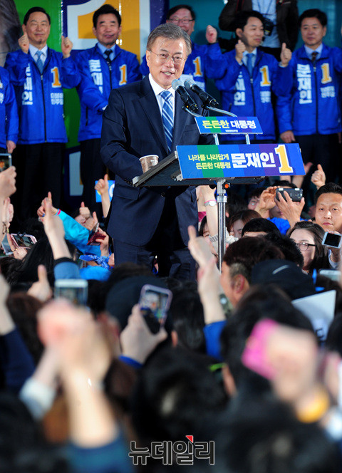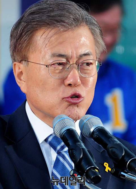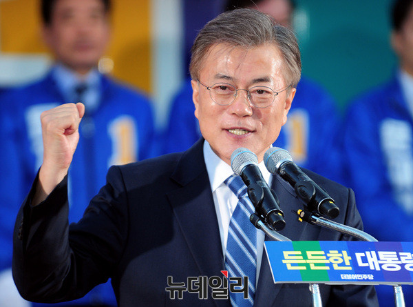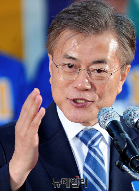 문재인 더불어민주당 대선후보가 27일 오후 경기도 성남시 야탑역 앞 광장에서 발언하고 있다.