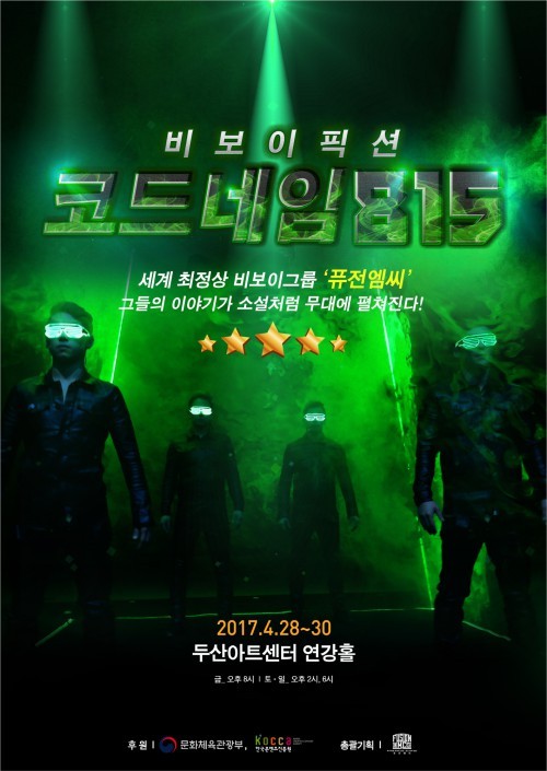 비보이픽션 '코드네임 815'가 두산아트센터 연강홀에서 막을 올린다.문화체육관광부와 한국콘텐츠진흥원이 지원하는 '우수 융복합 공연 콘텐츠 제작지원 사업 라이징 스타(RISING STAR)'를 통해 개발된 콘텐츠로, 비보이그룹 퓨전엠씨가 직접 기획하고 제작했다.퓨전엠씨는 창단 이래 비보이대회 20회 이상의 우승 경력과 2015년 10월 '세계 비보이크루 랭킹 1위'를 달성하며 세계 최정상 비보이그룹으로 평가를 받고 있다.'코드네임 815'는 홀로그램, 미디어 아트, 레이저 아트, 프로젝션 맵핑 등의 기술과 스트릿 댄스라는 예술과 만나 완성된 융복합 넌버벌 퍼포먼스이다. 세계 비보이 대회를 준비하던 중 전신마비 부상을 당한 퓨전엠씨의 18살 막내 비보이의 실화를 바탕으로 구성했다.평생 걷지 못할 거라는 의사의 판정을 받았지만 1년 후 기적처럼 걷게 된 실화를 재구성해 더욱 감동적인 스토리로 선보인다. 기존의 공연에서는 움직임이나 의상, 색상 연출을 통해 이뤄지던 상징화된 표현을 홀로그램, 미디어 아트 등의 첨단 기술을 통해 환상적인 무대를 펼칠 예정이다.화려한 무대 효과와 다채로운 고난이도 퍼포먼스로 관객들을 매료시킬 '코드네임 815' 4월 28일부터 30일까지 두산아트센터 연강홀에서 공연된다. 입장료 2만5천~4만원.[사진=한국콘텐츠진흥원]