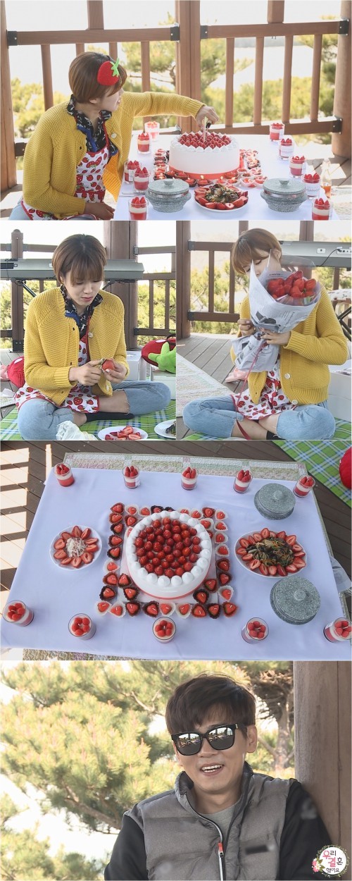 '우결' 장도연이 최민용의 생일을 맞아 '취향저격' 딸기파티를 개최한다.29일 방송될 MBC '우리 결혼했어요'(이하 '우결')에서는 장도연이 결혼 후 처음 맞는 남편 최민용의 생일을 기념하기 위해 생일상 차리기에 도전하는 모습이 그려진다.공개된 사진 속 장도연은 딸기 앞치마에 딸기 머리띠까지 착용, 상큼함을 뽐내고 있다. 여기에 정자가 딸기로 뒤덮여 있어 눈길을 끈다.이날 장도연은 몰래 생일파티를 계획, 최민용이 좋아하는 딸기로 생일상을 가득 차렸다. 이 밖에도 미역국에 잡채까지 만드는 등 파티 준비에 만전을 기했다.또 딸기 케이크와 딸기 양초는 물론 꽃다발 대신 딸기다발까지 등장하며 생일상은 딸기밭이 됐다고. 특히, 딸기로 무장한 장도연까지 더해지며 파티 준비는 완벽하게 마무리됐다는 전언이다.최민용 장도연의 딸기파티 현장은 29일 오후 4시 55분 '우리 결혼했어요'를 통해 확인할 수 있다.['우리결혼했어요' 최민용 장도연, 사진=MBC]