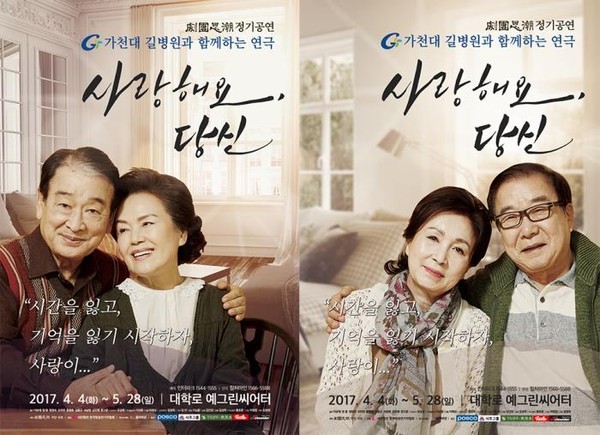 극단 사조(思潮)의 연극 '사랑해요, 당신'이 5월 가정의 달을 맞아 추가공연을 확정했다.'사랑해요, 당신'은 5월 8일과 11일, 25일 오후 3시 총 3회차 추가 공연을 진행한다. 특히 어버이날 기념 10% 할인, 11·25일 특별공연 50% 할인 30000원에 인터파크에서 예매할 수 있다.연극 '사랑해요, 당신'은 극단 사조의 대표이자 이번 작품의 프로듀서를 맡은 유승봉 대표가 이상용 작가와 함께 3년간의 철저한 사전 준비작업을 거쳐 만든 2017년 첫 신작이다.아내와 자식들에게 누구보다 큰 애정을 가지고 있지만 마음과 다르게 항상 퉁명스러운 남편이 아내가 치매증상을 보이기 시작하면서 변화하는 과정을 그린다. 이순재-장용, 정영숙-오미연은 각각 남편 '한상우', 아내 '주은애' 역을 맡았다.연극 '사랑해요, 당신'은 대학로 예그린씨어터에서 5월 28일까지 공연된다.[사진=극단 사조]
