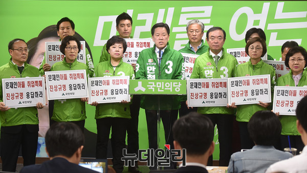 국민의당 주승용 원내대표가 28일 오후 서울 여의도 당사 브리핑룸에서 열린 더불어민주당 문재인 대선후보 아들 문준용씨 특혜취업 규명 기자회견에서 발언을 하고 있다.