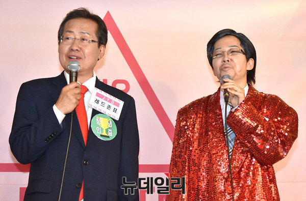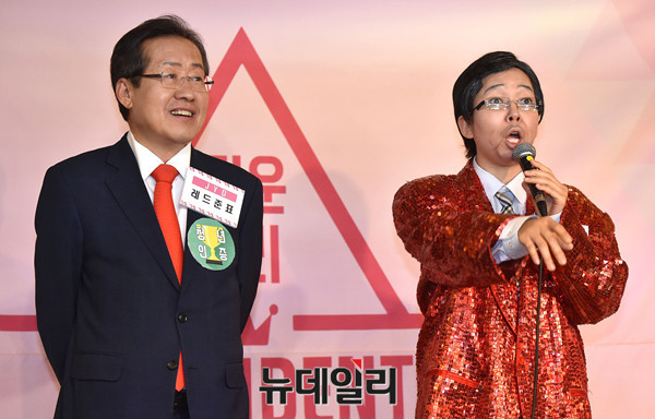 [포토] 레드준표 정이랑과 만난 홍준표 후보