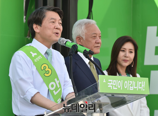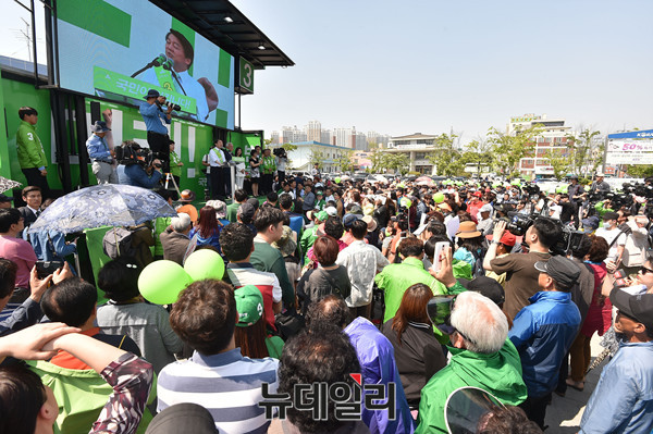 국민의당 안철수 대선후보가 3일 오후 전라북도 익산 익산역광장에서 열린 국민승리유세에서 시민들에게 지지를 호소하고 있다.