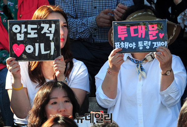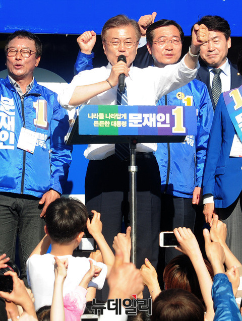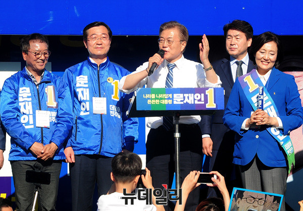 문재인 더불어민주당 대선후보가 3일 오후 경남 창원시 마산합포구 문화광장에서 유세를 하고 있다.