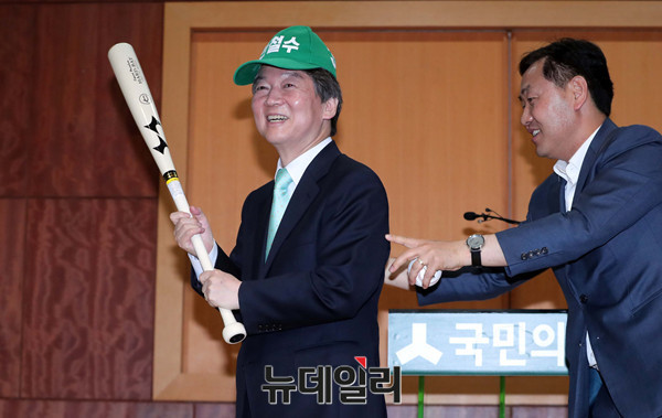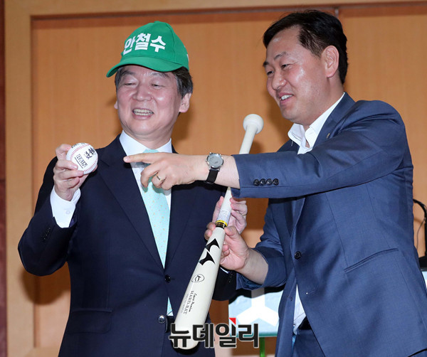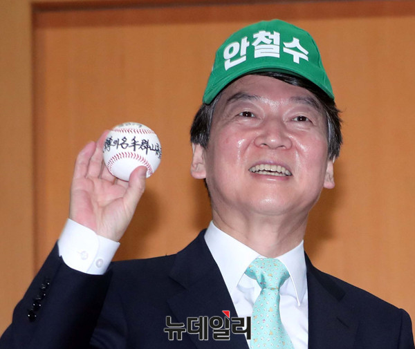 [포토] 배트와 야구공 선물받은 안철수 후보