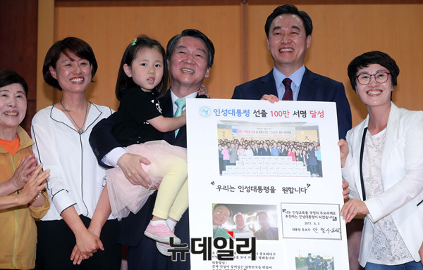 국민의당 철수 대선후보가 3일 오후 전북 김제 새만금33센터를 방문해 '새만금 비전 선포식'에 참석해 기념사진을 촬영하고 있다.