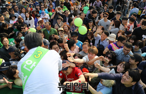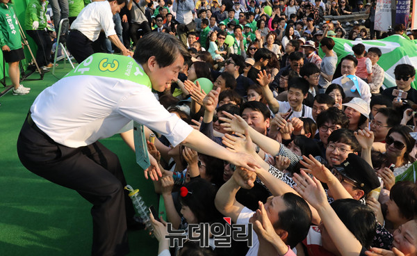 국민의당 안철수 대선후보가 3일 오후 전라북도 전주 한옥마을에서 열린 ‘국민이 이깁니다’ 국민승리유세에서 유권자들과 인사를 나누며 지지를 호소하고 있다. (전라북도 전주=뉴데일리 이종현 기자)
